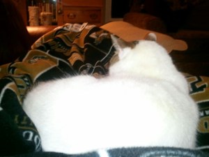 Over the holidays however, I noticed a change. One day my daughters arrived home from college. They lavished Chatty with attention. They slipped him extra food and kept him supplied with catnip. He sat next to them on the couch bundled together with their fleece blankets. Suddenly, I realized that Chatty no longer followed me from room to room. I didn’t see him waiting for me in a corner, one eye open in preparation for my move. If one of the girls went upstairs, much to my dismay, he left with them. Chatty was sleeping around.